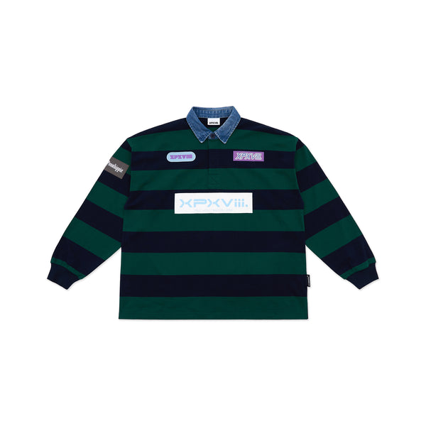 XPX DENIM COLLAR OVERSIZED POLO SHIRT IN STRIPE