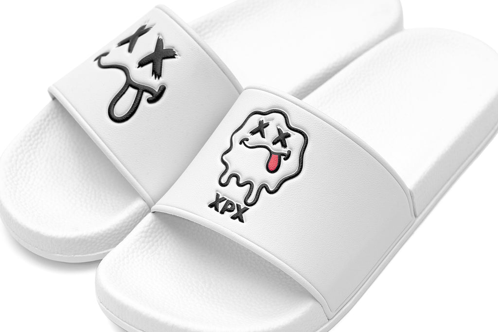 "XPX "EMBOSSED SILLY FACE" SLIPPER IN WHITE
