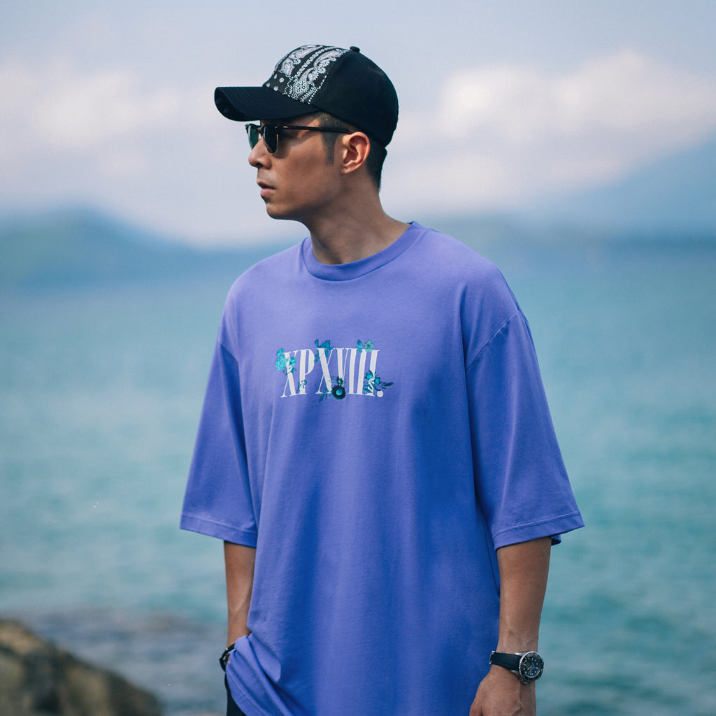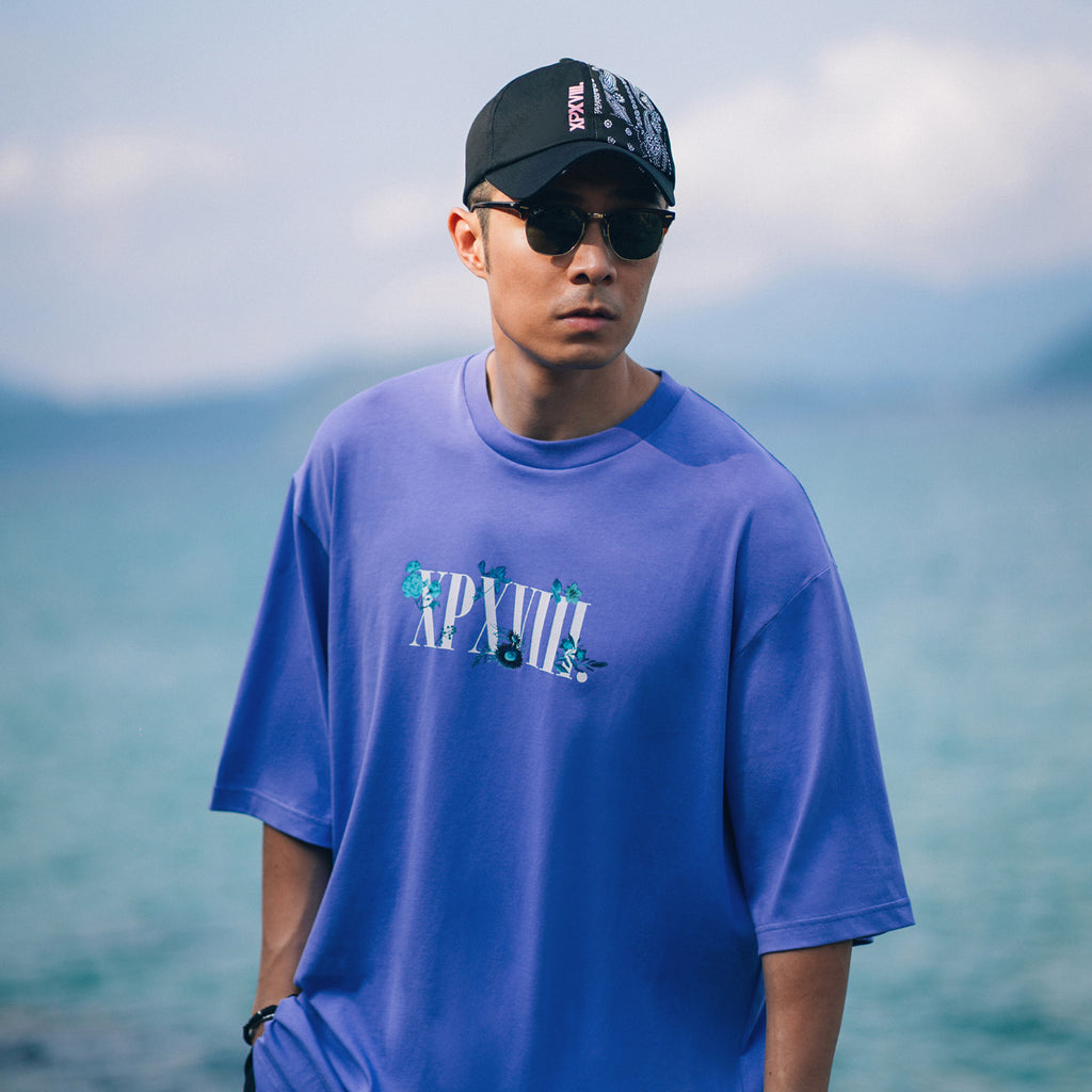 "XPX "FLORAL XPXVIII." PURPLE CREW NECK TEE