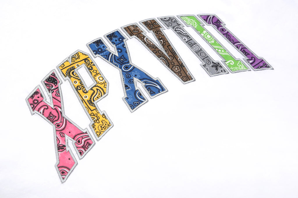 "XPX "PAISLEY PATCHED XPXVIII."WHITE CREW NECK TEE