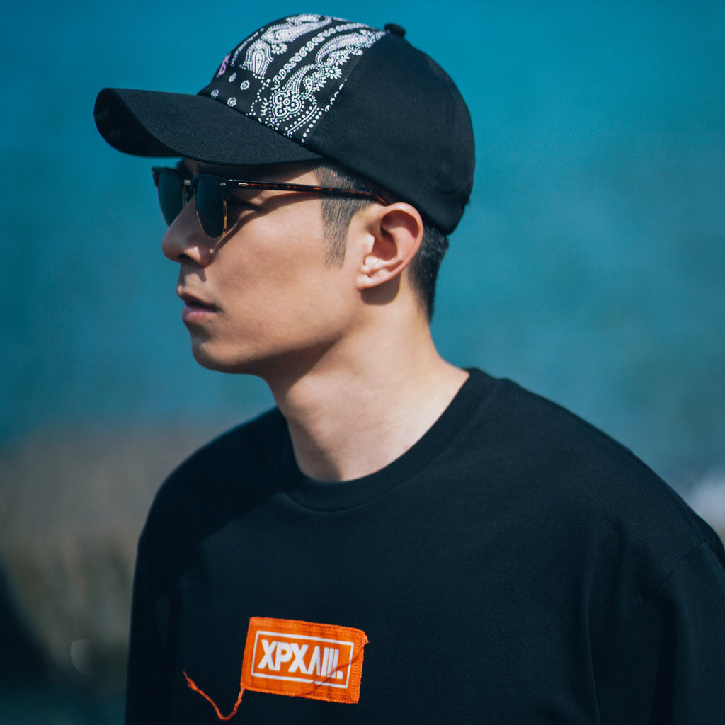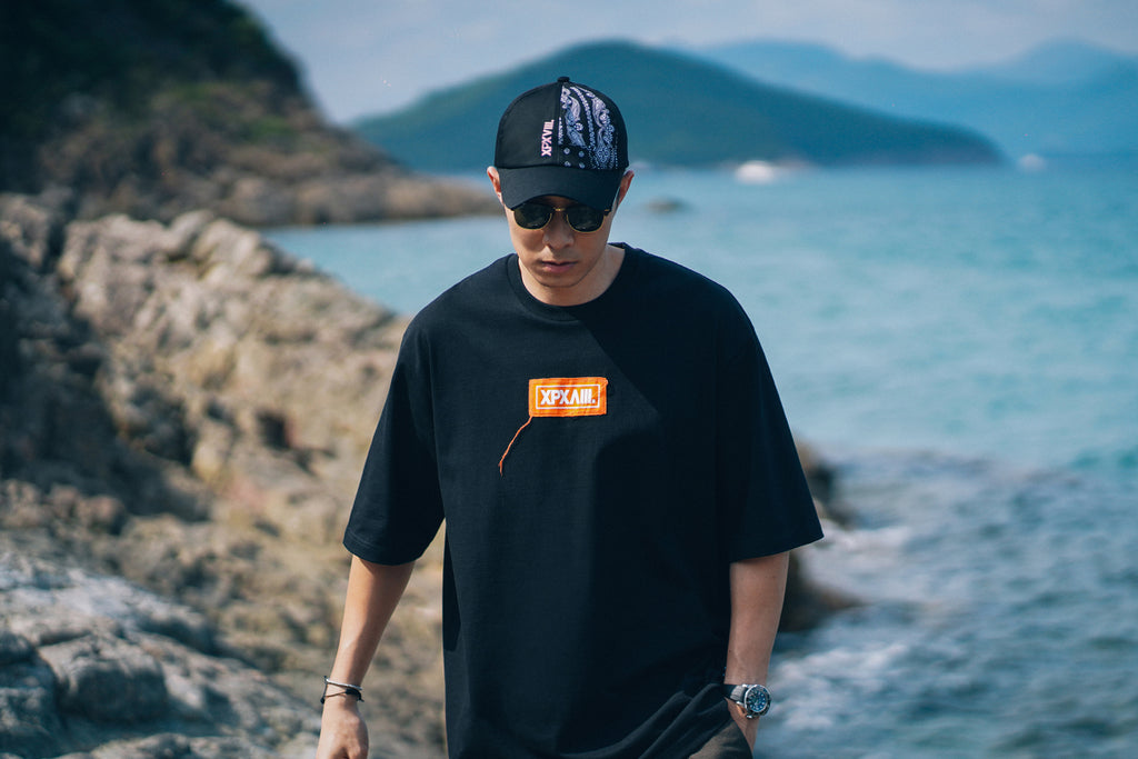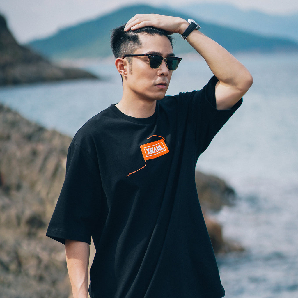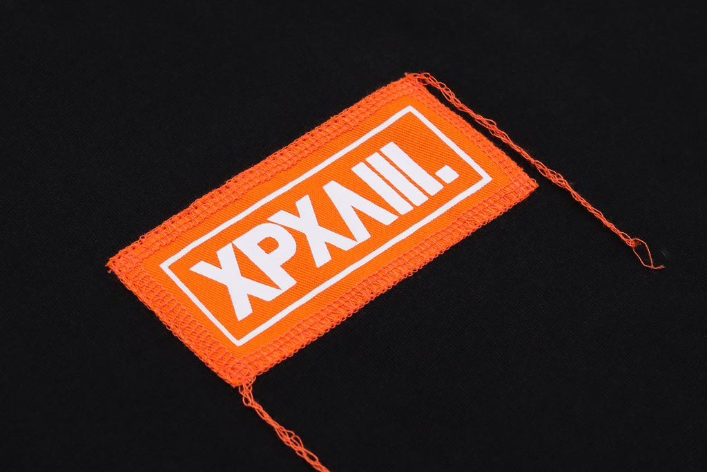 "XPX "SHARP COLOR PATCHED XPXVIII. LOGO" BLACK CREW NECK TEE