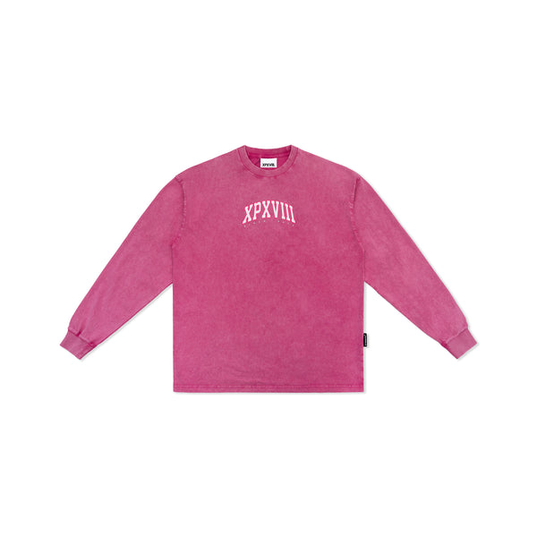 XPX "STONE WASHED EFFECT" PINK CREW NECK LONG TEE